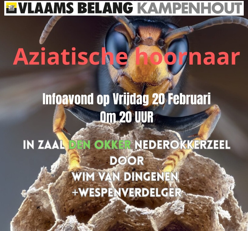 De predator van onze bijen : de Aziatische hoornaar. Je hebt het waarschijnlijk al gemerkt. Deze hoornaar komt meer en meer voor in onze gemeente. We gaan hem niet meer wegkrijgen maar kunnen wel met zijn allen inzetten op het in toom houden van deze populatie. Hoe doen we dat, met welk materiaal, wie kan ons daarbij helpen en waar kan u het melden? Dat alles komt u te weten op onze infoavond.